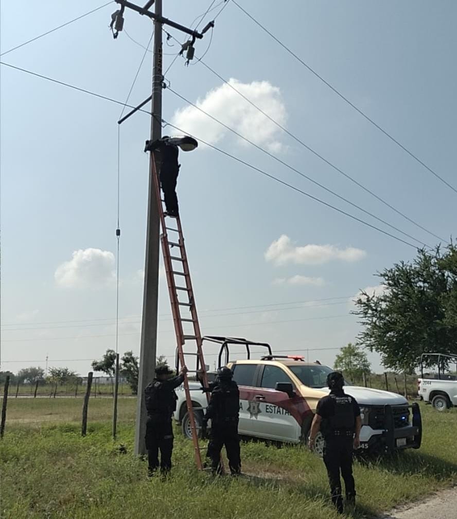 Durante recorridos de seguridad y vigilancia sobre la carretera estatal 38 Abasolo–Ejido Nuevo Morelos, detectaron una luz intermitente que provenía de una lámpara de alumbrado público de color negro.