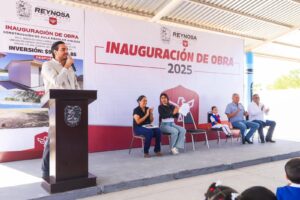 Por parte de los pequeños estudiantes y acompañada por las madres de familia y plantel magisterial, María Sánchez Gómez emitió un breve y emotivo discurso para agradecer por la aplicación del Programa de Obra Pública Más Grande en la Historia de Reynosa en su escuela, ubicada en el fraccionamiento Ventura.