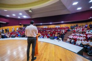 «Ustedes pueden hacer la universidad, luego sigue una maestría, un doctorado, la educación continua para poder ir capacitándote en los temas que a ustedes les importan y que puedan tener un impacto real en nuestra sociedad», dijo el Alcalde ante alumnos de preparatoria, secundaria y primaria.