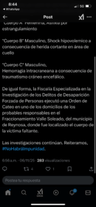 Las investigaciones continúan. Reiteramos, #NoHabráImpunidad.