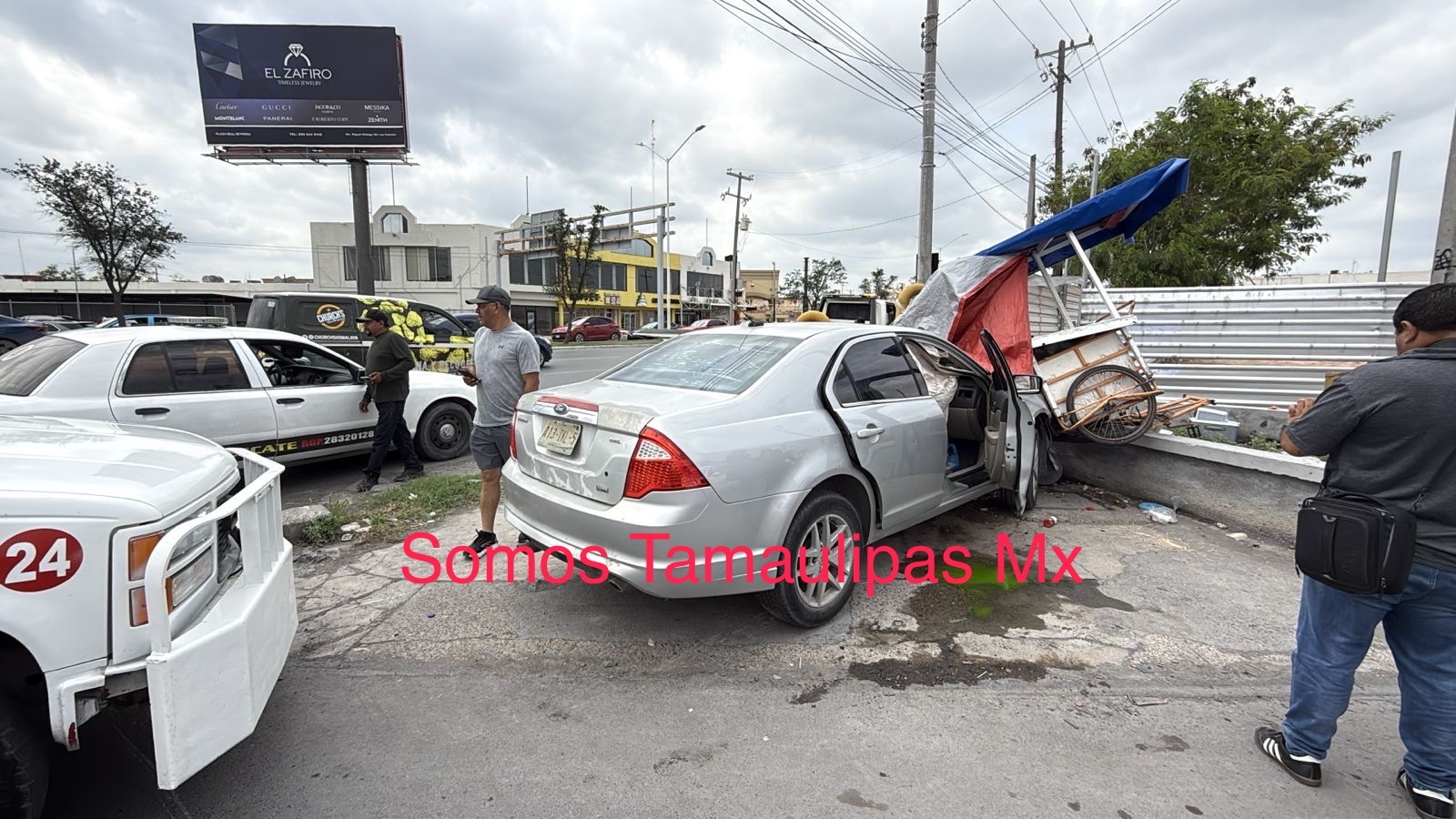 Este sábado 18 de abril resultó trágico para una mujer que se dedica a la venta de tacos frente a HEB de Boulevard Morelos luego de que un masculino que viajaba en un vehículo Ford Fushion perdiera el control y se impactara contra su puesto de tacos.